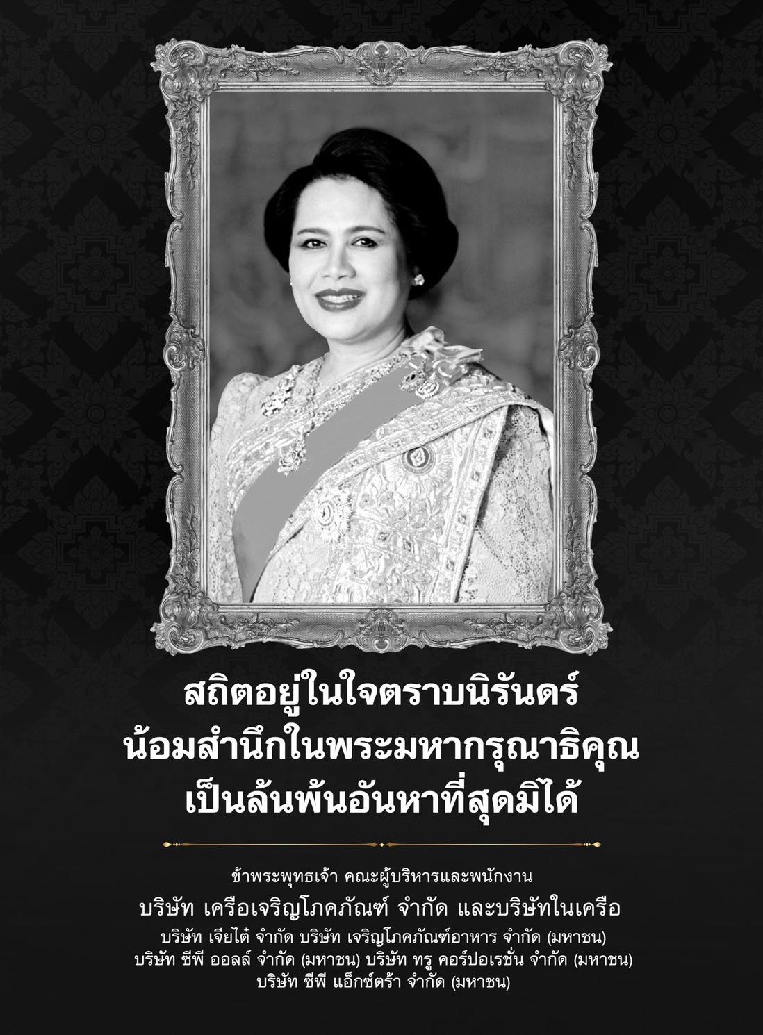พีไอเอ็ม รวมใจเป็นหนึ่ง พร้อมบริษัทซีพี ออลล์ จำกัด (มหาชน) และเครือเจริญโภคภัณฑ์ทุกสำนักงานทั่วโลก ร่วมแสดงความอาลัยและน้อมรำลึกในพระมหากรุณาธิคุณสมเด็จพระนางเจ้าสิริกิติ์ พระบรมราชินีนาถ พระบรมราชชนนีพันปีหลวง