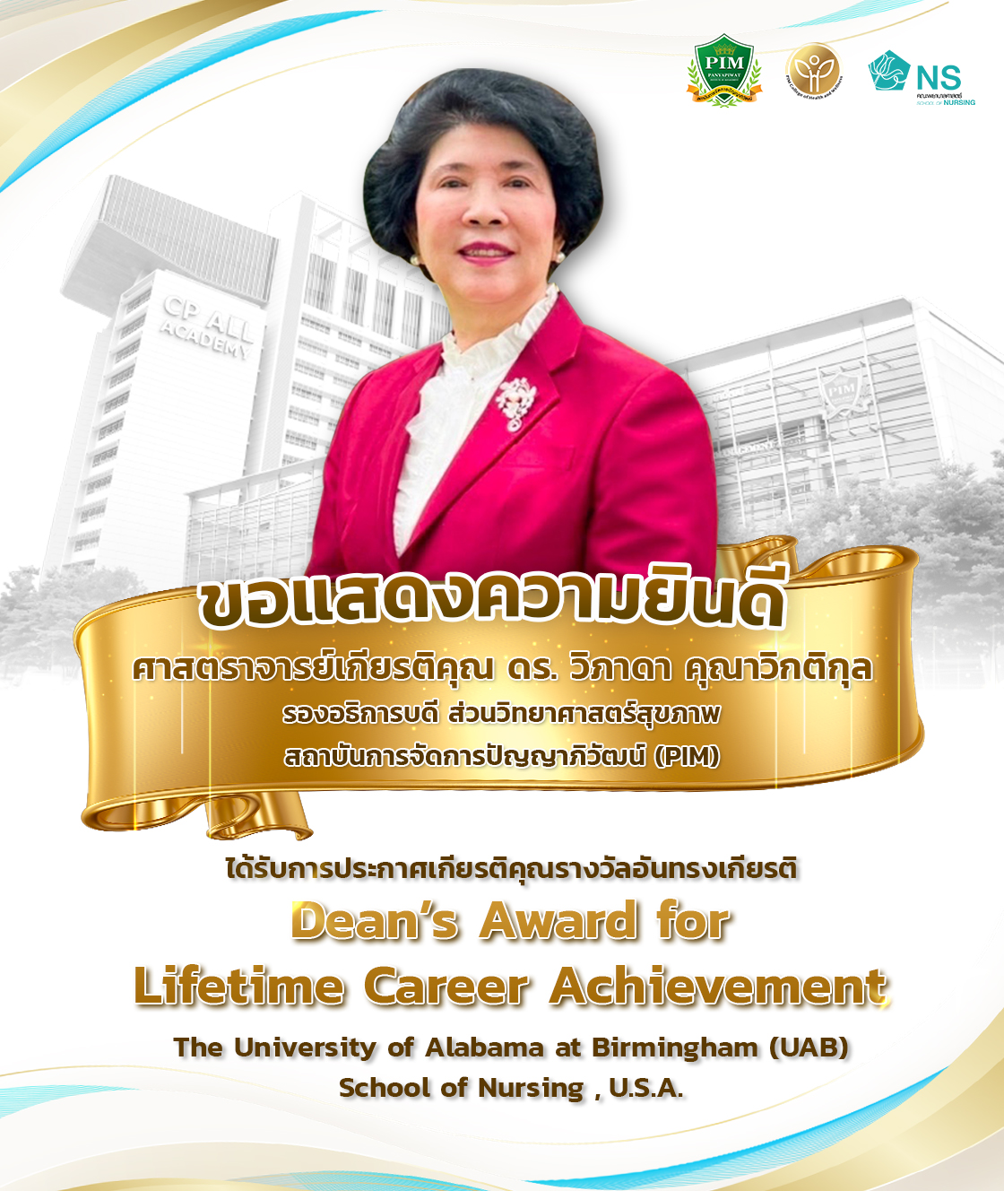 ตุลาคม 1, 2025ศ. เกียรติคุณ ดร.วิภาดา คุณาวิกติกุล รับรางวัล Dean’s Award for Lifetime Career Achievement จาก The University of Alabama at Birmingham U.S.A. สร้างชื่อเสียงประจักษ์และเป็นที่ยอมรับระดับโลกขอแสดงความยินดีแด่บุคคลทรงคุณค่า ศาสตราจารย์เกียรต…