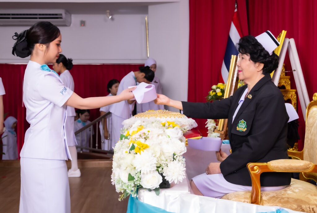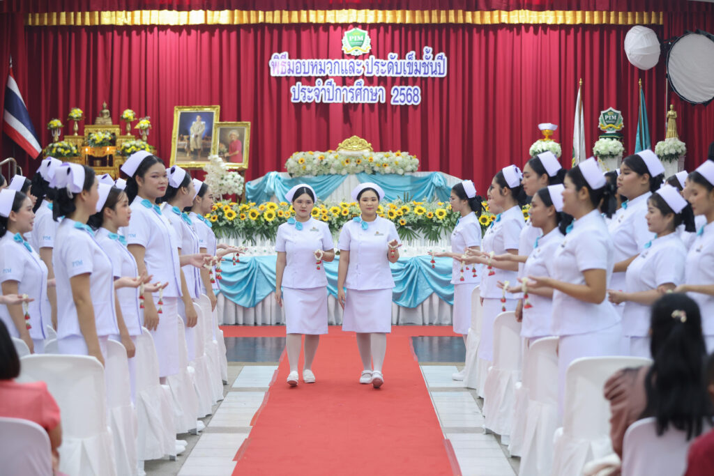 เมื่อเร็วๆ นี้ คณะพยาบาลศาสตร์ สถาบันการจัดการปัญญาภิวัฒน์ (พีไอเอ็ม) จัดพิธีรับหมวกและประดับเข็มชั้นปีการศึกษา 2568 สำหรับนักศึกษา หลักสูตรพยาบาลศาสตรบัณฑิต หลักสูตรทางวิชาชีพ 4 ปี และ นักศึกษาหลักสูตรพยาบาลศาสตรบัณฑิต หลักสูตรทางวิชาชีพ 2.5 ปี (สำหรับผู้สำเร็จปริญญาตรีสาขาอื่น) จำนวน 136 คน โดยมีแขกผู้เกียรติ อาทิ พลเรือตรี ทวี วงศ์วาน รองผู้บัญชาการหน่วยบัญชาการนาวิกโยธิน คุณธณพง โคตรมณี นายกเทศมนตรีตำบลเขาชีจรรย์ คุณสุนดา ศรีถนอม รองปลัดองค์การบริหารส่วนตำบลพลูตาหลวง จังหวัดชลบุรี พญ.สุดานี บูรณเบญจเสถียร รองนายแพทย์สาธารณสุขจังหวัดชลบุรี พร้อมด้วยผู้บริหารพีไอเอ็ม ศาสตราจารย์เกียรติคุณ ดร. วิภาดา คุณาวิกติกุล รองอธิการบดีส่วนวิทยาศาสตร์สุขภาพ พลโทองอาจ ชวาลวิวัฒน์ ผู้ช่วยอธิการบดี ด้านกิจกรรมพิเศษ รองศาสตราจารย์ ดร. อัจฉรา สุคนธสรรพ์ คณบดีคณะพยาบาลศาสตร์ ตลอดจน ผู้บริหารจากเครือข่ายพันธมิตรโรงพยาบาล คณาจารย์ บุคลากร และ ผู้ปกครอง ร่วมแสดงความยินดี ณ อาคารอเนกประสงค์หน่วยบัญชาการนาวิกโยธิน อำเภอสัตหีบ จังหวัดชลบุรี