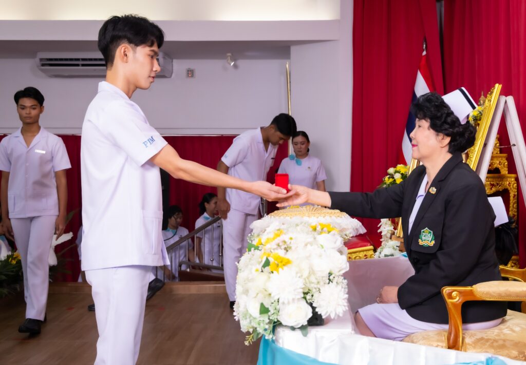 ภายในงานนอกจากจะมีการแสดงความยินดีจากผู้บริหารแล้ว ยังมีพิธีมอบหมวกและประดับเข็มชั้นปี ซึ่งเป็นสัญลักษณ์ให้ยึดมั่นในคุณธรรม จริยธรรม และจรรยาบรรณวิชาชีพ พร้อมนำความรู้ทางการพยาบาลที่ได้ศึกษาอย่างเข้มข้น ก้าวสู่การฝึกปฏิบัติอย่างเต็มด้วยความตั้งใจ รวมถึงพิธี “Light Lantern Featuring” จุดเทียนไนติงเกลทั้งสวยและเต็มไปด้วยความหมาย เพื่อระลึกถึงพยาบาลต้นแบบที่เสียสละและมีจิตใจงดงาม งานนี้จึงไม่ใช่แค่วันแห่งความภาคภูมิใจเท่านั้น แต่ยังเป็นจุดเริ่มต้นของการเติบโตในสายวิชาชีพ กับการเดินทางครั้งใหม่ที่จะได้เรียนรู้ทั้งจากบทเรียนในห้องและประสบการณ์จริง