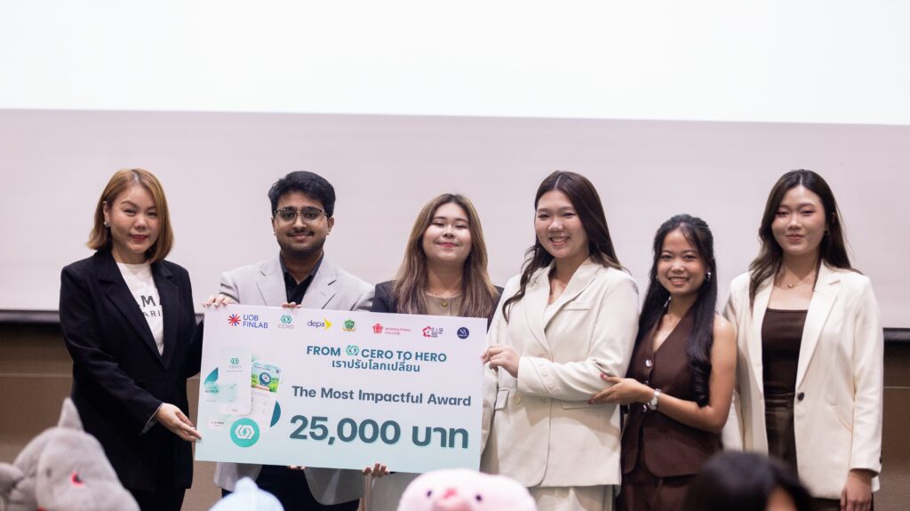 ขอแสดงความยินดีกับผู้ที่ได้รับรางวัล รอบชิงชนะเลิศ โครงการ “From CERO to HERO – เราปรับโลกเปลี่ยน” จัดโดย วิทยาลัยนานาชาติ และ สำนักกิจการนักศึกษา สถาบันการจัดการปัญญาภิวัฒน์ (PIM) ร่วมกับ UOB FinLab , บริษัท เวคิน (ประเทศไทย) ผู้พัฒนาแอปพลิเคชัน CERO ซึ่งเป็นเครื่องมือช่วยลดคาร์บอนจากกิจวัตรประจำวัน และสำนักงานส่งเสริมเศรษฐกิจดิจิทัล (Depa) เวทีที่เปิดโอกาสให้นักศึกษานำเสนอแนวคิดและกิจกรรมการตลาดเชิงสร้างสรรค์ ที่มุ่งส่งเสริมการดำเนินชีวิตแบบคาร์บอนต่ำ และสร้างแรงบันดาลใจในการอนุรักษ์สิ่งแวดล้อมอย่างยั่งยืน ซึ่งผู้ที่คว้ารางวัลในครั้งนี้ ได้แก่