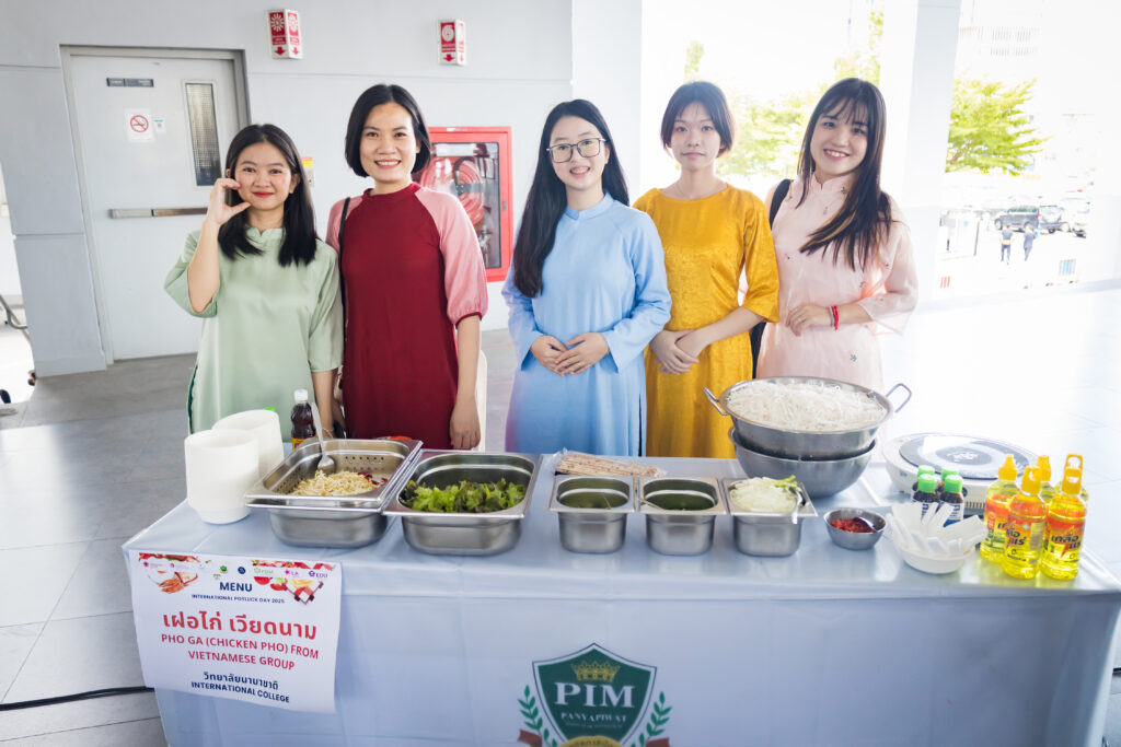 สถาบันการจัดการปัญญาภิวัฒน์ (PIM) เสริฟความอร่อยและความหลากหลายทางอาหารในงาน International Potluck Day 2025 โดยคณาจารย์นักศึกษาจาก สำนักกิจการนักศึกษา วิทยาลัยนานาชาติ คณะการจัดการธุรกิจอาหาร คณะศิลปศาสตร์ คณะครุศาสตร์ Stenden Thailand และวิทยาลัยนานาชาติจีน เปิดโอกาสให้นำเสนออาหารประจำชาติหรืออาหารพื้นเมือง เพื่อแลกเปลี่ยนวัฒนธรรมและเรียนรู้เบื้องหลังของอาหาร โดยมี ดร.ม.ล. สรสิริ วรวรรณ คณบดี คณะครุศาสตร์ คุณจันทิมา สุรรัตน์ ผู้อำนวยการสำนักกิจการนักศึกษา อาจารย์เกวรินทร์ ฉันทนะสุขศิลป์ รองคณบดี ฝ่ายบริหาร แผนงานและประกันคุณภาพ คณะศิลปศาสตร์ ASST.PROF. Paul Kalin ผู้ช่วยคณบดี ฝ่ายกิจกรรมนักศึกษา คณะการจัดการธุรกิจอาหาร และ อาจารย์ปาณัท ไตรสุวรรณ หัวหน้าสาขาวิชาการเป็นผู้ประกอบการธุรกิจสมัยใหม่ วิทยาลัยนานาชาติ เปิดงาน พร้อมด้วย บุคลากร นักศึกษา ร่วมงานเป็นจำนวนมาก เมื่อวันศุกร์ที่ 17 ตุลาคม 2568 ณ ชั้น L อาคาร CP All Academy ถนนแจ้งวัฒนะ