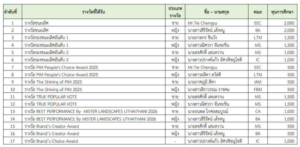 - คุณธราดล ชาติสังข์ ศิษย์เก่า PIM และรุ่นพี่ ALL STAR เจ้าของตำแหน่ง Mister Landscapes Uthai Thani 2026