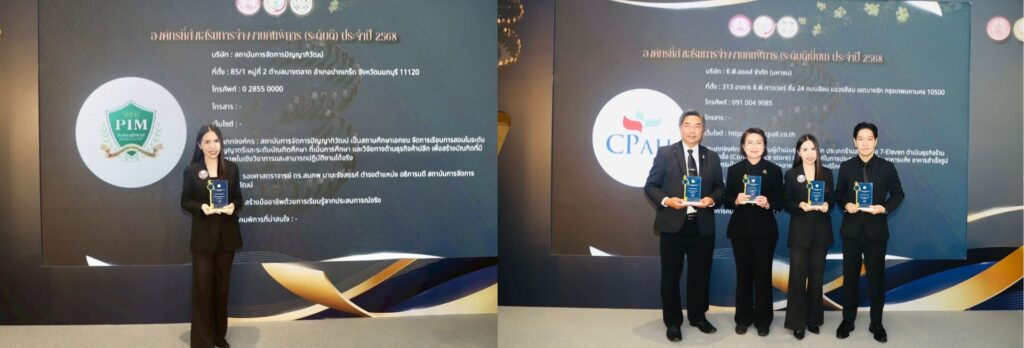 สถาบันการจัดการปัญญาภิวัฒน์ (พีไอเอ็ม) ได้รับรางวัล “องค์กรส่งเสริมพัฒนาคุณภาพชีวิตคนพิการ ระดับดี ประจำปี 2568” จากกระทรวงการพัฒนาสังคมและความมั่นคงของมนุษย์ (พม.) ในงานวันคนพิการสากล ภายใต้แนวคิด “การส่งเสริมสังคมที่ครอบคลุมและเอื้อต่อคนพิการ เพื่อขับเคลื่อนความก้าวหน้าและการพัฒนาทางสังคมอย่างยั่งยืน” โดยในพิธีมอบรางวัลได้รับเกียรติจาก คุณสนธยา บุณยภูษิต อธิบดีกรมส่งเสริมและพัฒนาคุณภาพชีวิตคนพิการ (พก.) สังกัดกระทรวงการพัฒนาสังคมและความมั่นคงของมนุษย์ (พม.) เป็นผู้มอบโล่ประกาศเกียรติคุณ และ คุณอังคณา โบสิทธิพิเชฎฐ์ รองผู้อำนวยการสำนักทรัพยากรมนุษย์ สถาบันการจัดการปัญญาภิวัฒน์ เป็นผู้แทนเข้ารับมอบรางวัลในครั้งนี้